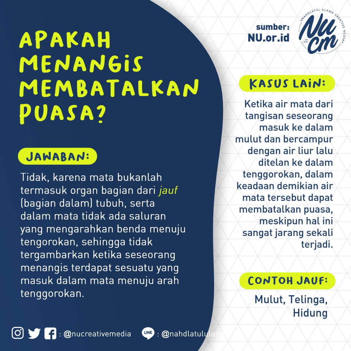 Islam Nusantara On Twitter Apakah Menangis Membatalkan Puasa Sering Kali Kita Mendapati Pertanyaan Bahwa Menangis Dapat Membatalkan Puasa Bagaimana Hukumnya Secara Syariat Mari Kita Simak Dalam Infografis Berikut Untuk Mendapatkan Jawaban Yang